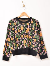パイル編みであしらわれた、立体の花模様がアクセントになったセーター。柔らかな肌触りのアクリルニット生地で、程よい厚みがあります。