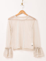 キラッと光るラメと、袖口のフリルがポイントになった長袖カットソー。シアー生地の程よい透け感で、インナー使いにぴったりの一着です。