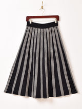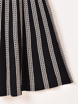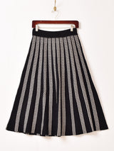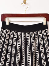 ストライプ柄のモノグラム風パターンが目を惹く、ニット生地のフレアスカート。厚みがあり肌触りの良い生地感です。