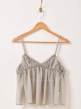 透け感のあるチュール生地のキャミソール。ふわりと広がるシルエットでウエストカバーも叶う、レイヤードのポイントに活躍するアイテムです。胸の部分のみ裏地付きです。