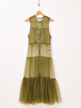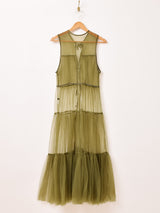 【5色展開】Meridian チュール フロントオープン ノースリーブ ワンピース