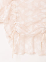 フロントの調整可能なギャザーと袖口のフリルがアクセントになったカットソー。程よい透け感がこなれたスタイルに仕上げてくれそうな一着です。
