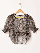 【3色展開】Meridian 総柄 シアー フリル 半袖カットソー