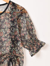 【3色展開】Meridian 総柄 シアー フリル 半袖カットソー