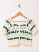 【2色展開】Meridian 半袖 パフスリーブ クロシェ カーディガン