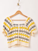 【2色展開】Meridian 半袖 パフスリーブ クロシェ カーディガン