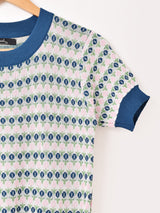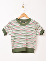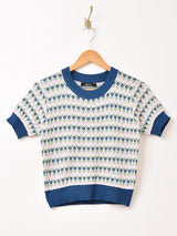 ボーダーラインになった花柄が目を惹くサマーニットトップス。襟と袖口、裾はリブ仕様。程よい厚みの、さらりとした生地感です。