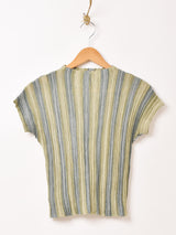 【2色展開】Meridian 半袖 ストライプ プリーツ ニットトップス