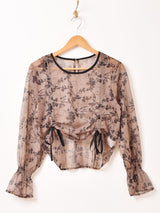 【2色展開】Meridian 総柄 シアーフリル 長袖カットソー