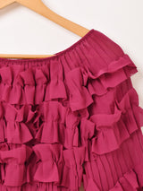 ガーリーなフリルと程よい透け感が目を惹くシアーのトップス。ショート丈でウエスト部分はギャザーなのでスタイル良く着こなせます。