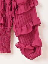 【2色展開】Meridian 長袖 シアー フリルトップス