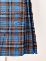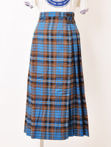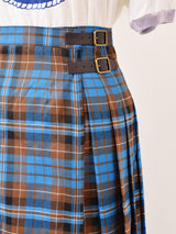 秋らしいチェック柄が目を惹くロングスカート。巻きスカートタイプなので、ウエストのサイドベルトでサイズ感の調節が可能。ボトムスやワンピースの上から重ね着ができ、コーディネートの幅が広がる一着です。バックスタイルはプリーツになっているため、前後でスカートの印象が変わります。