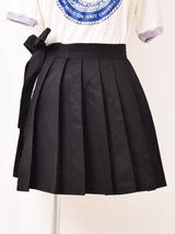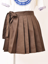 スクールファッション感満載のプリーツデザインが目を惹く、スカート風エプロン。ボトムスやワンピースなど、色々なアイテムの上から重ね着できるので、コーディネートの幅が広がること間違いなしの一着です。