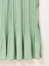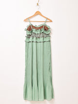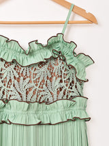 フロントにレースとフリルがあしらわれ、エレガントな雰囲気のキャミワンピ。スカート部分はプリーツ状になっていて、あまり広がらないストレートシルエットです。パーティーシーンなどのドレスとしても着ていただけます。