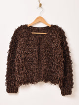 糸がループ状に縫製されたハンドニットのカーディガン。前開きリボンタイプなので、結んでトップスとして、開ければアウターとしても活躍する一着。柔らかな肌触りも魅力的です。