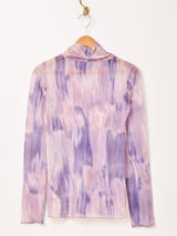 鮮やかなマーブル模様が目を惹くシースルートップス。程よい透け感がトレンド感のある着こなしにぴったりの一着です。やや伸縮性のある生地感です。