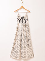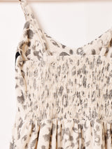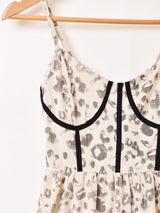 おしゃれ度の高いペイント調のヒョウ柄に、コルセット風のテープデザインがポイントになったキャミワンピ。裏地はありませんが柔らかなコットンポリ素材です。