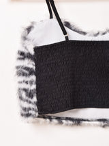 ふわふわのゼブラ柄ファーのビスチェ。バックはギャザー仕様のためボリュームが出すぎず、程よく身体にフィットします。コーディネートのポイントに季節感を出せるアイテムです。
