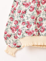 可愛らしいチェリー柄が目を惹くゴブラン織りの長袖トップス。ニットリブのフリルデザインもポイントです。