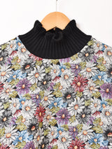 色鮮やかなマーガレットモチーフが目を惹くゴブラン織りの長袖トップス。ニットリブのフリルデザインもポイントです。