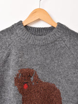 哀愁漂う表情のワンちゃんが可愛らしい、ラグランスリーブのセーター。アクリル素材で厚みがあり、弾力のある生地感です。