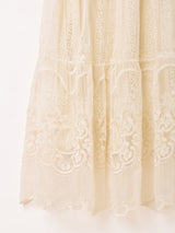 シアー生地に繊細な刺繍が施されたロングスカート。裾の広がったティアードデザインで、ふんわりとしたシルエットで着こなしていただけます。裏地付き。