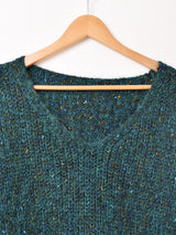 カラフルな毛糸が編み込まれ雰囲気の良いセーター。オーバーサイズでゆるりとしたシルエットに、Vネックでデコルテをスッキリと見せてくれます。アクリル素材で柔らかく、あたたかみのある生地感です。
