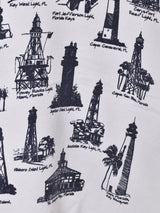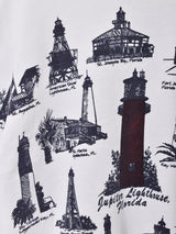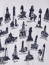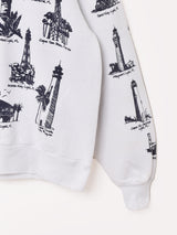 様々な灯台がぎっしりと描かれたスウェットシャツ。ジャージーズのボディで、程よい厚みの生地感です。