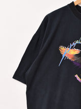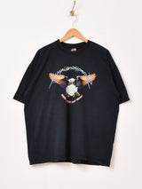 フロントには1999年、パックには2000年のコピーライトが入った、ハーレーダビッドソンのプリントTシャツ。フロントの鷹とバックのロゴが対になったような洒落たデザインです。アメリカのバイクショップらしいビッグなサイズ感も魅力の一着です。