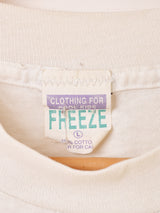 スマイリーフェイスのプリントTシャツ。様々な表情をしたスマイリーたちがキュートで可愛い一着です。シングルステッチで、ボディはFREEZE社製。キッズのLサイズで、レディースのS~Mサイズ程度です。くたっとした肌触りやプリントなど、90年代らしいディテールが魅力的です。