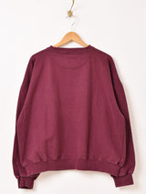 ワインレッドのボディにシンプルなロゴデザインで、使い勝手良くコーディネートに馴染みやすい一着。首元にはガゼット付き。程よい厚みの生地感です。