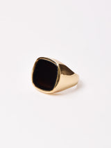 ゴールドの台座にブラックストーンが嵌め込まれたブラスリング。クールなデザインで、存在感を発揮してくれます。