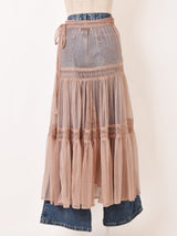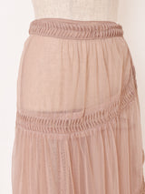大胆なチュールの透け感と、程よいフリルデザインが可愛い巻きスカート。様々なアイテムと組み合わせてレイヤードコーデを楽しめる、着回し抜群の一着です。オールシーズンで大活躍します。