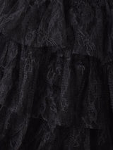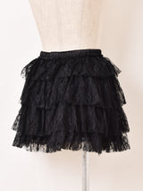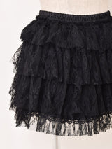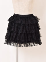 ラッフルレースが段々になったボリュームのあるガーリーなミニスカ。パンツやワンピースとレイヤードして旬なスタイリングも。裏地付きです。