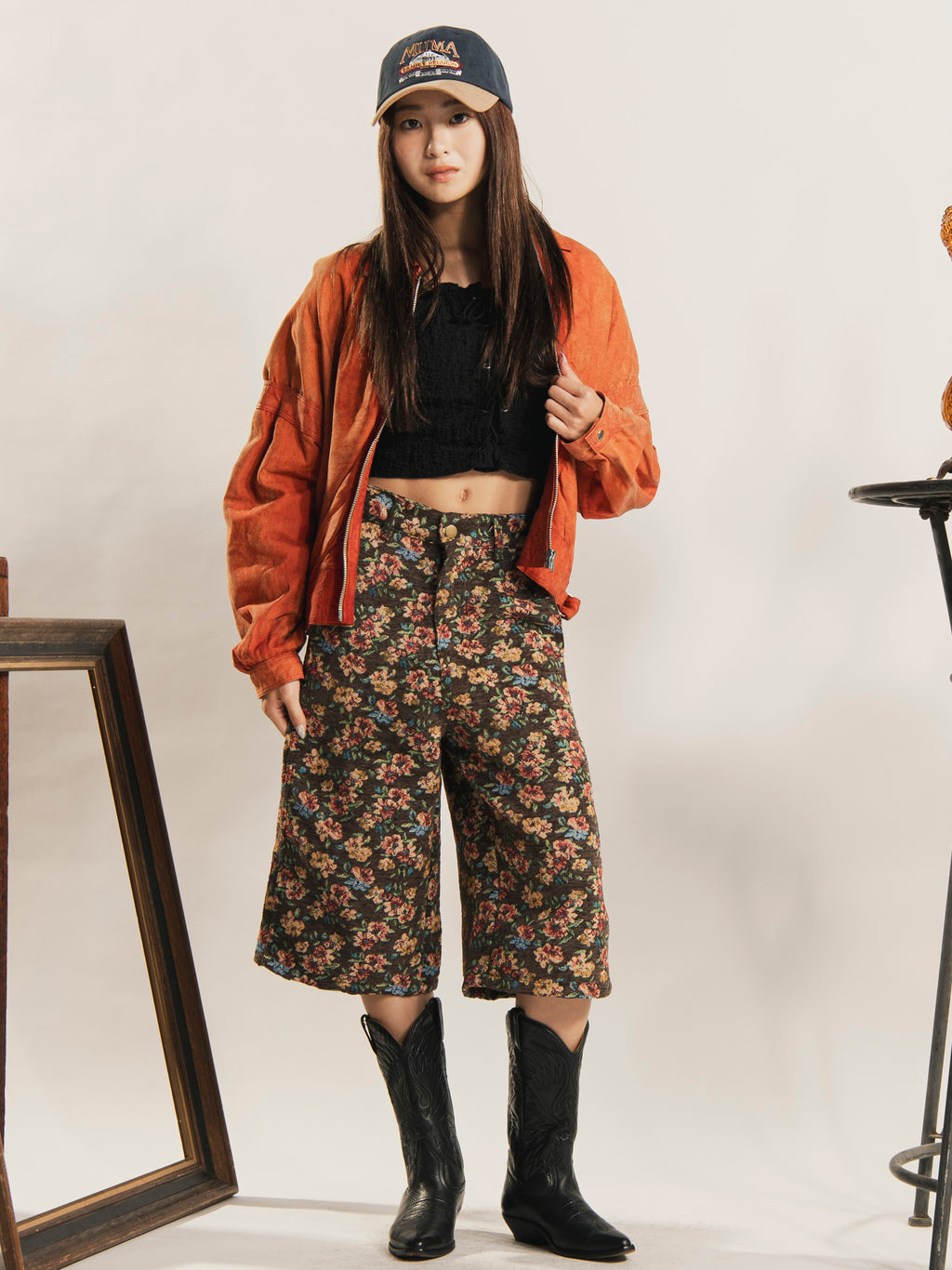 アンティークな雰囲気漂うタペストリー生地で仕立てた一着。トレンド感のあるハーフ丈にハイライズで、すっきりと脚長効果も◎。スニーカーやブーツと合わせて、Y2Kなどの旬なスタイルに着こなせます。