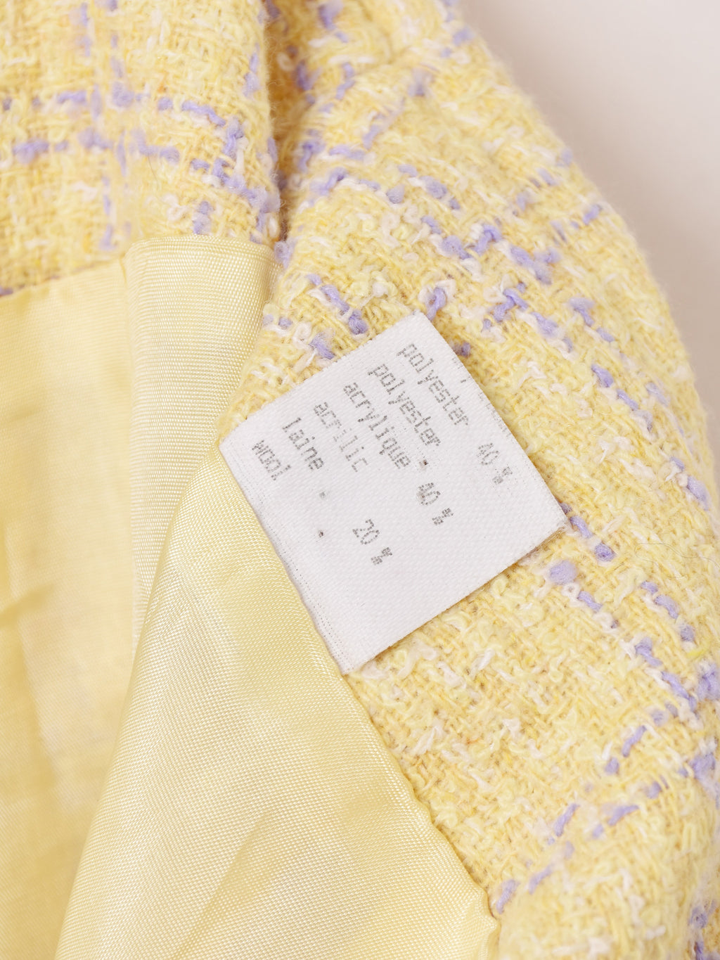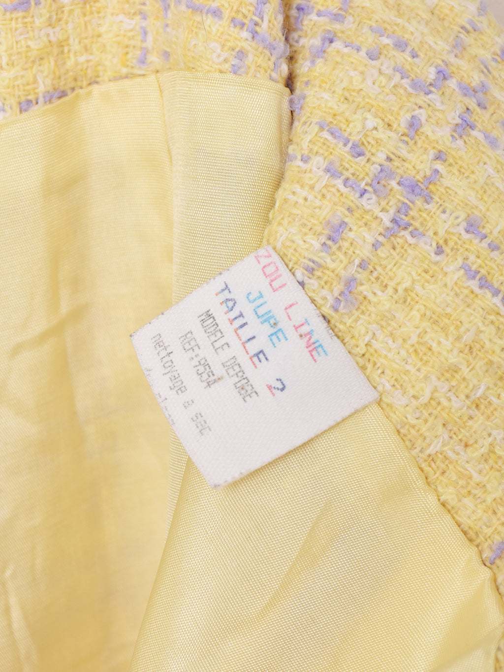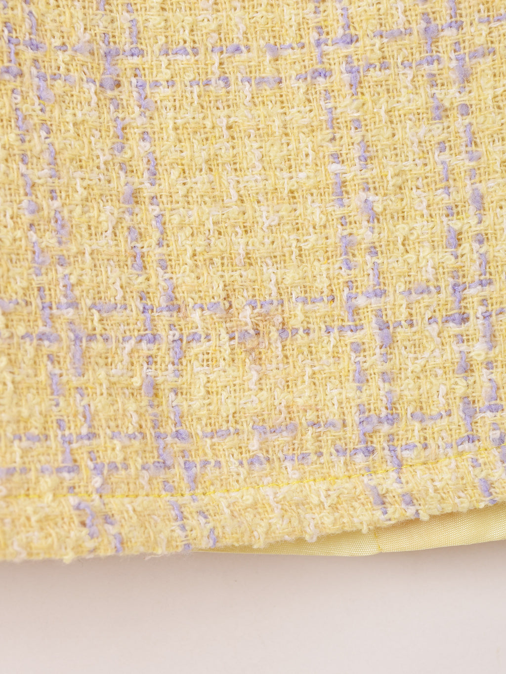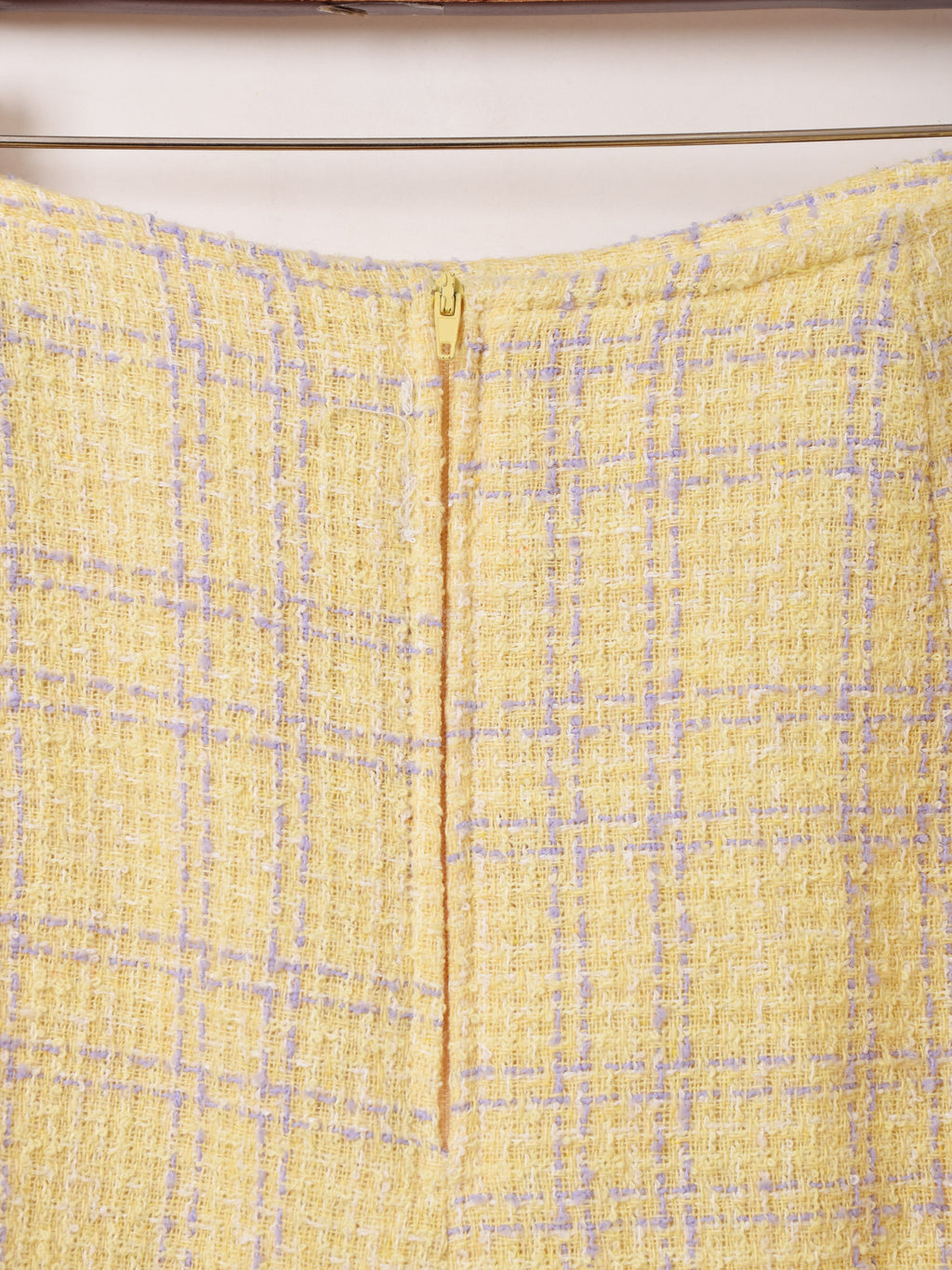 淡いイエローカラーに、ゴージャスなチェーン装飾が付いたミニスカ。Y2Kファッションにおすすめの一着です。