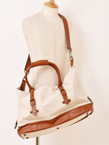 しっかりとしたキャンバス生地に、ストラップ部分等はレザーを使用したボストンバッグ。たっぷり荷物が入る大容量に、内ポケットが3つ。ショルダーバッグにもハンドバッグにもなる2way仕様です。