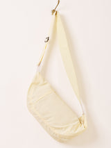ワイドなストラップで肩の負担を軽減してくれるボディバッグ。内ポケットは3つ、水筒もすっぽりと入るサイズ感で、レジャーや普段使いにおすすめ。ナイロンのような生地感で、コーデにも馴染みやすい一点です。