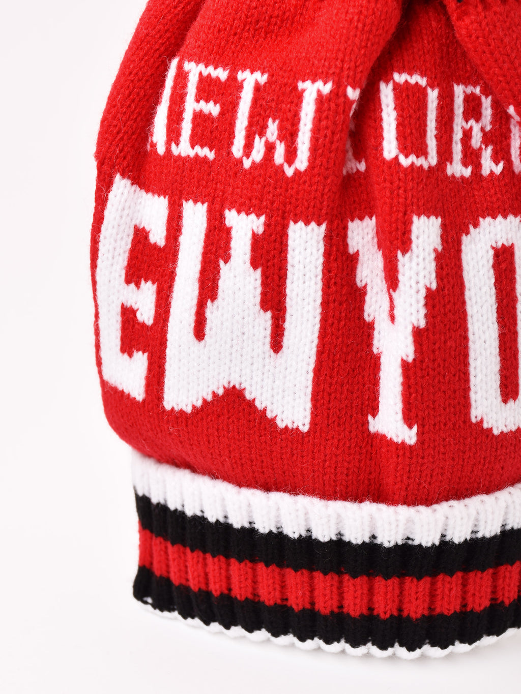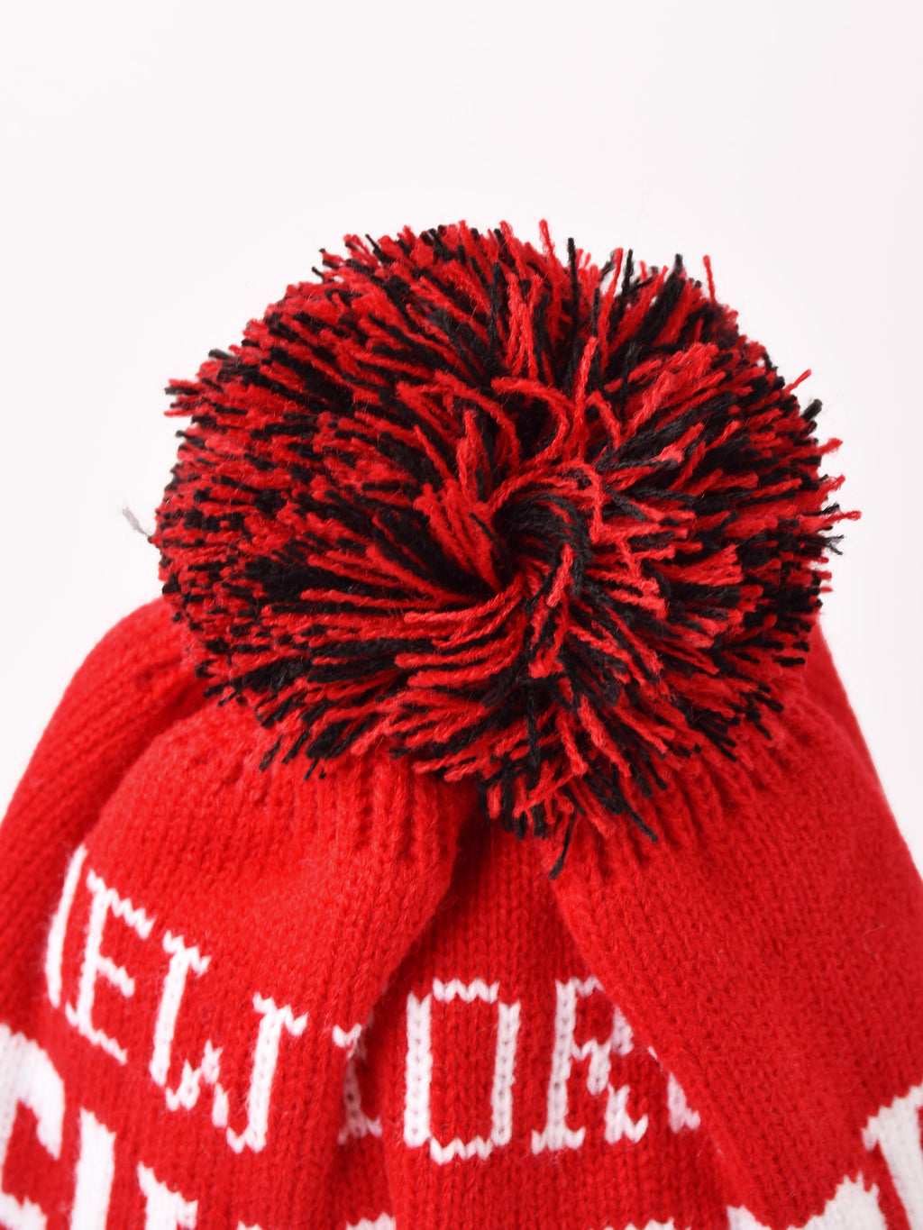 【2色展開】ポンポン付き ロゴ ニットキャップ「NEW YORK」