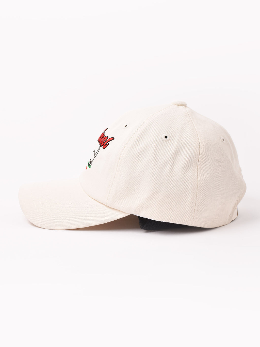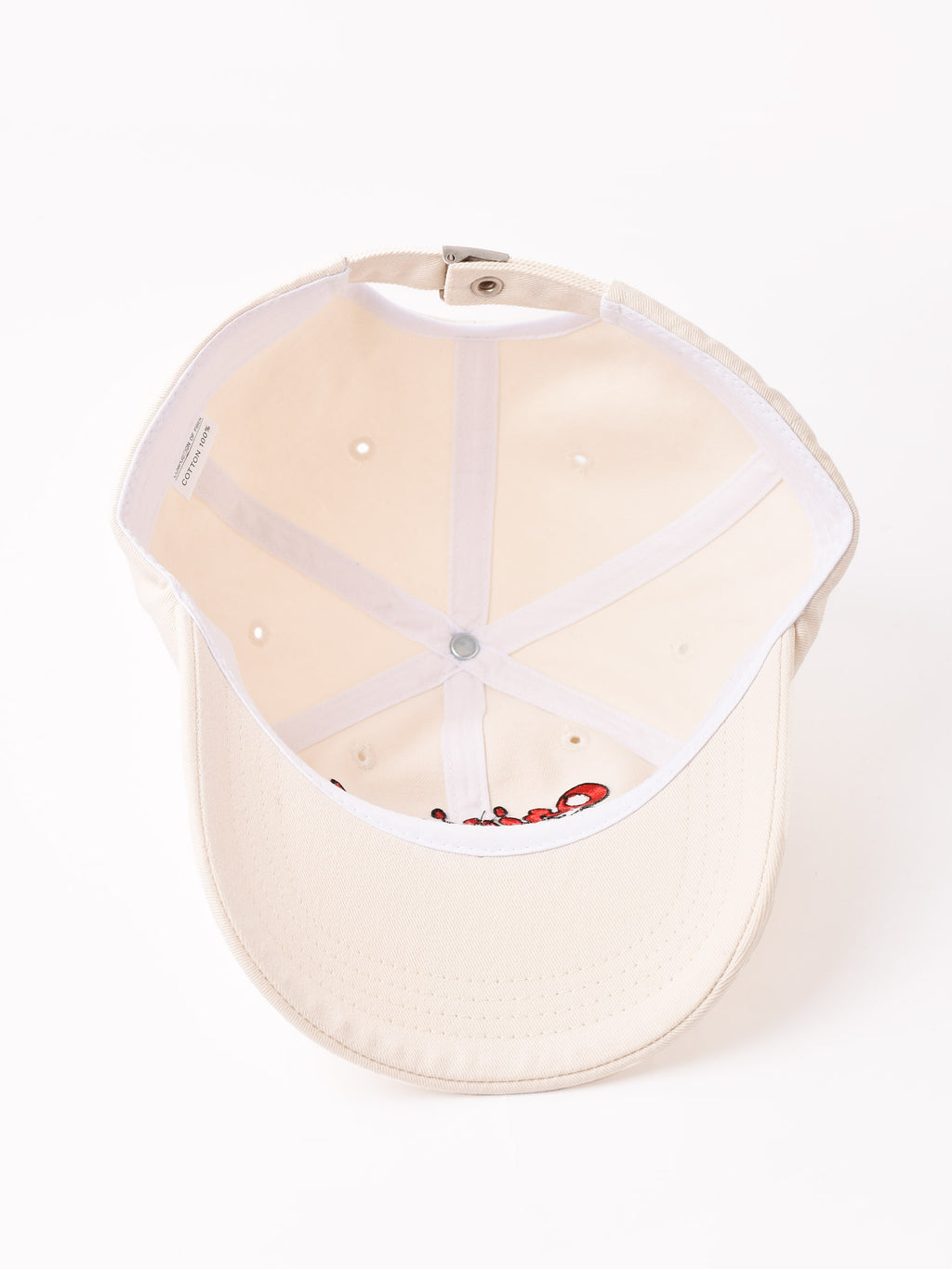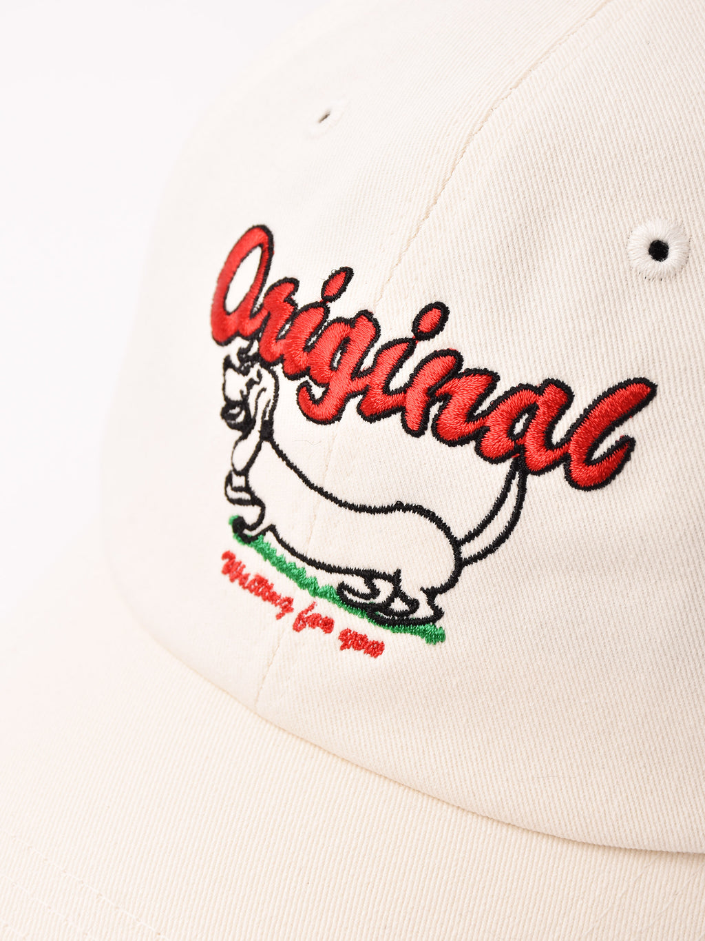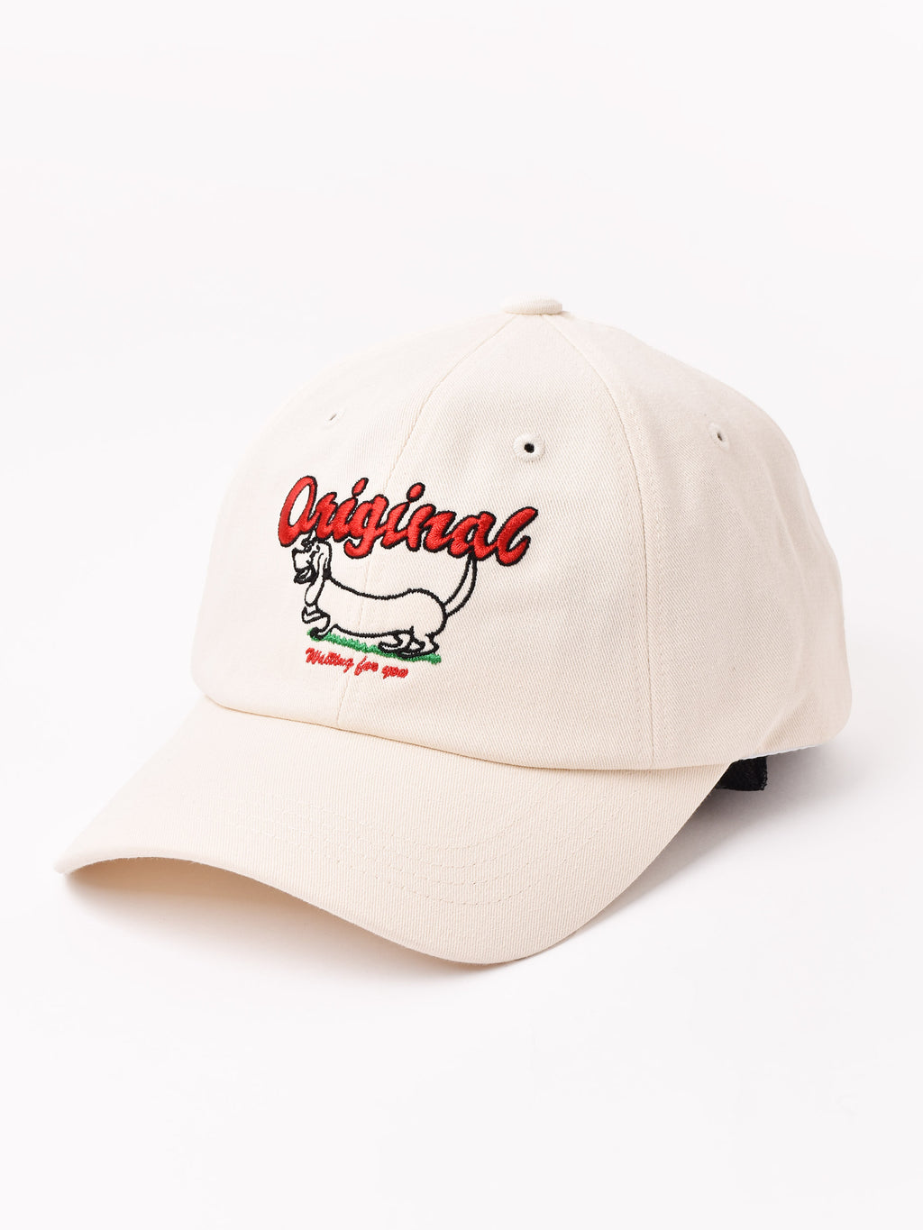 カジュアルなワンちゃんのロゴ刺繍入りコットンキャップ。オールシーズンで被れる一点です。