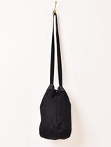 ブラックデニム生地で仕立てた、巾着タイプのショルダーバッグ。マチがあり500mlペットボトルが入るほどよいサイズ感です。