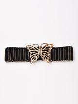 ゴールドの蝶々型バックルの太ベルト。ワンピースにはもちろんパンツスタイルにも合う一点です。
