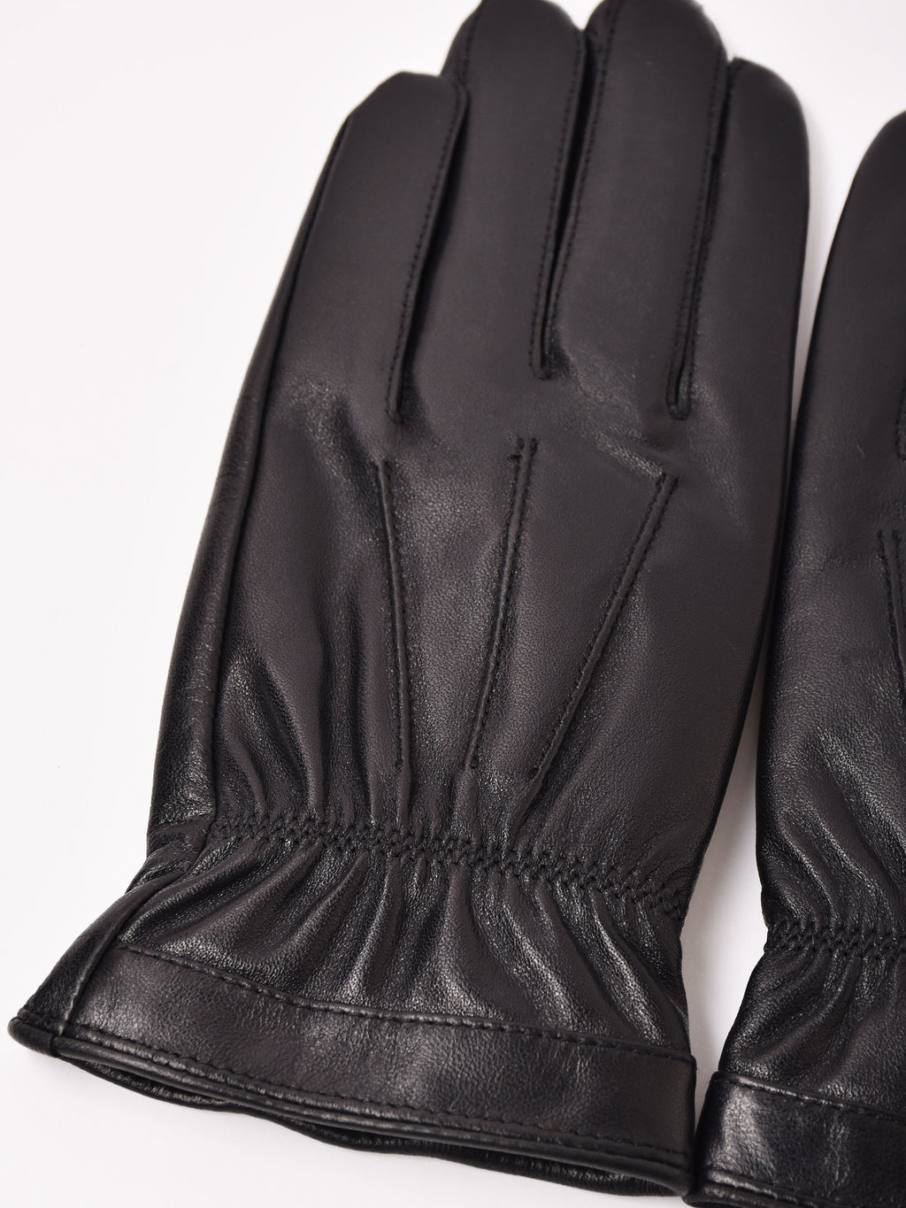 ステッチデザインが入った手袋。柔らかなシープスキンを使用、裏地はフリース生地で防寒もバッチリ。手元をエレガントにしてくれます。
