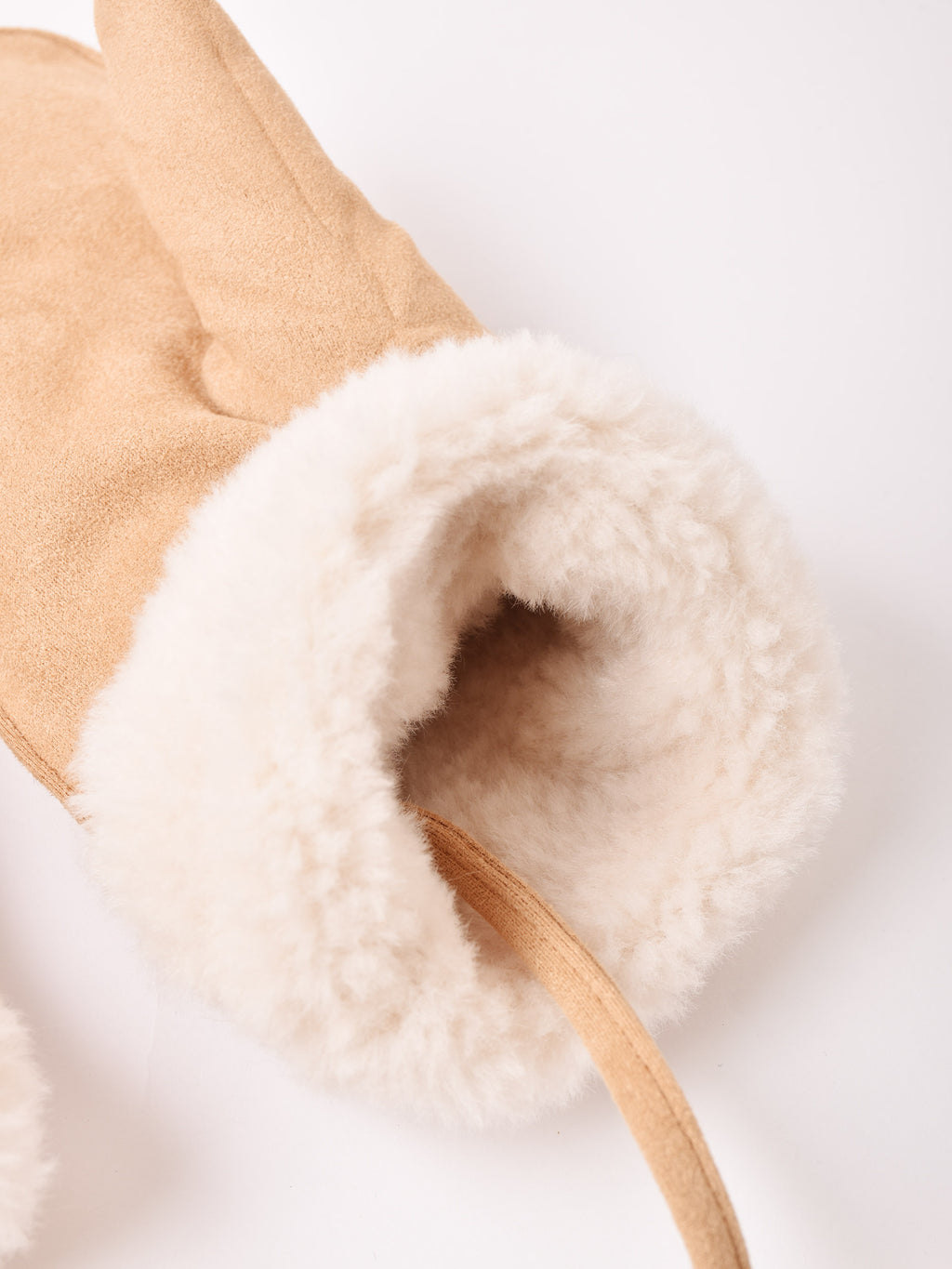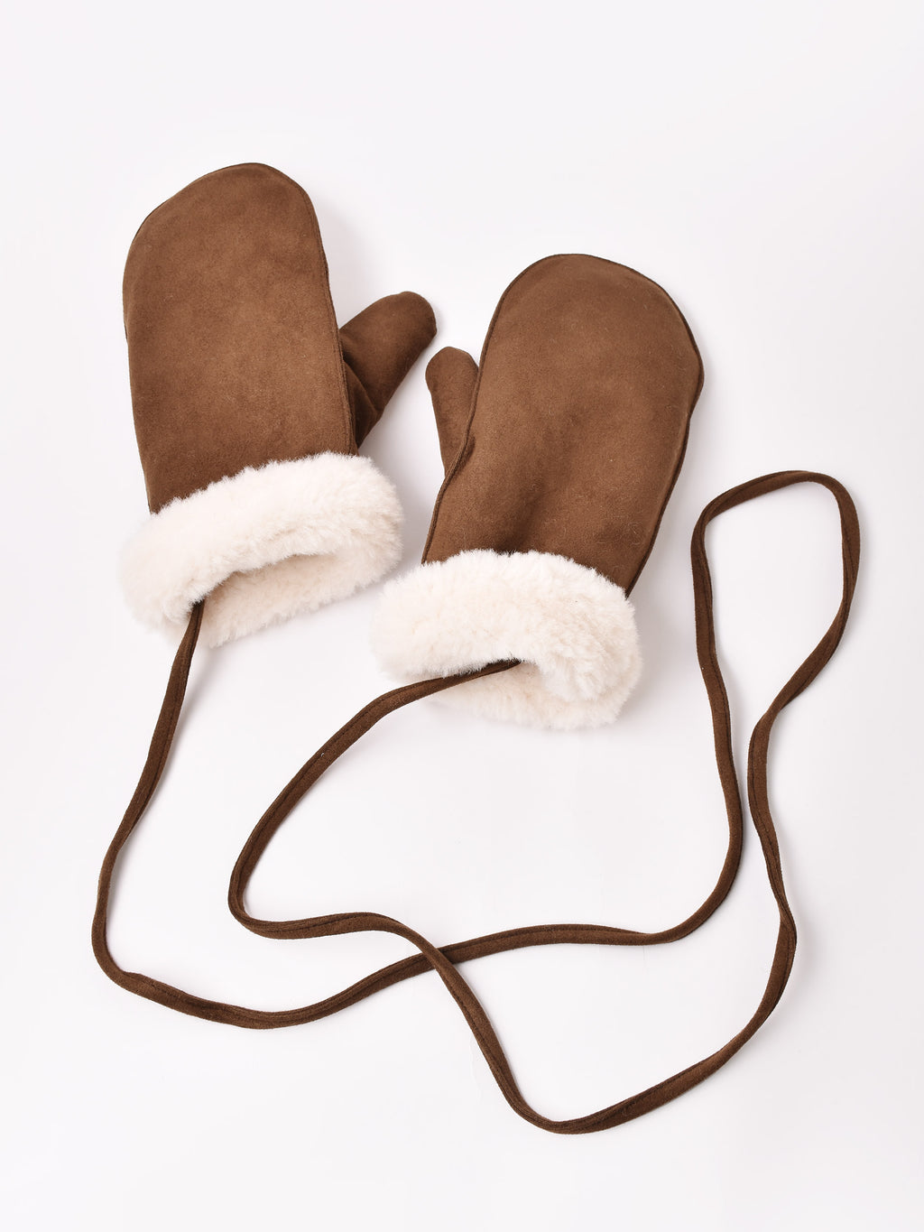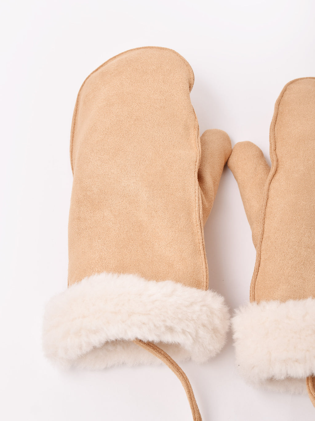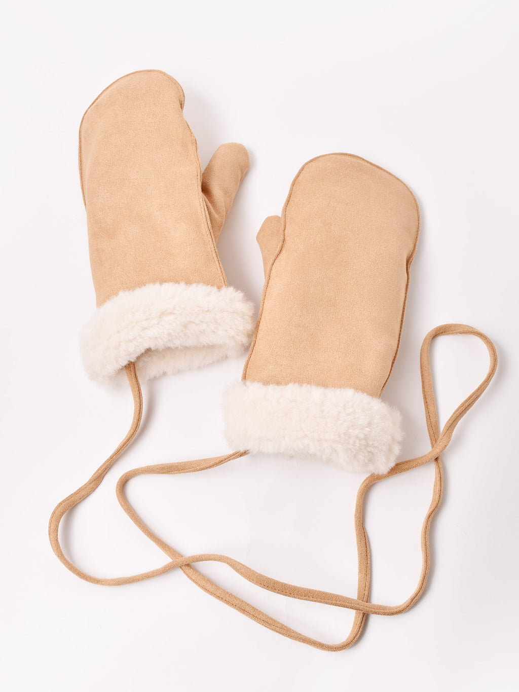 秋冬らしいムートン調の手袋。裏地はボア生地で防寒もバッチリ。紐付きなので、首にかけてアクセ使いにするのもおすすめです。