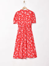 華やかなレッドボディの半袖ワンピース。程よい厚みで動きの出やすいレーヨン生地です。