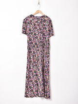 ブラックボディにくすんだ花柄がマッチした雰囲気のよいワンピース。柔らかく落ち感の出やすい生地です。