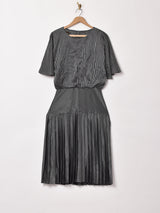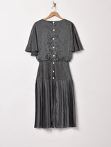 古着らしい切り替えのシルエットとフレアスリーブが魅力の半袖ワンピース。光沢のあるつやっとした生地感です。
