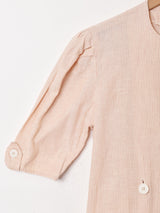 くすんだカラーがよい雰囲気のワンピース。おそらくコットン素材で、肌触りのよい一着です。