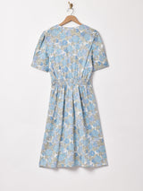 実際に作ることは難しいとされている、爽やかなブルーの花が目を惹く半袖ワンピース。薄手で涼し気な一着です。