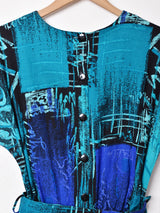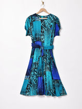 古着らしい個性的な柄が魅力のワンピース。1枚でさらっとキマるベルト付きが嬉しい一着。おそらくレーヨン素材で、薄手の動きの出やすい生地です。